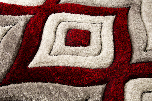 Sorrento 3D Crimson Wave Shag Area Rug, Red