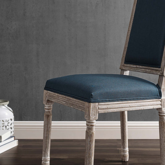 Corton Upholstered Side Chair, Natural Wood & Dark Blue