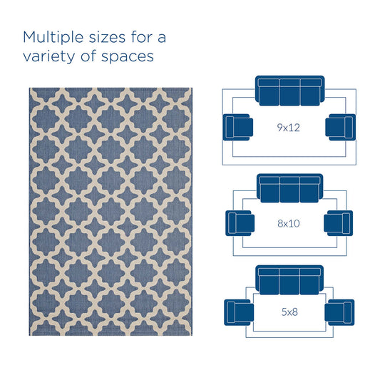 Cyrelle Indoor | Outdoor 9x12 Area Rug, Blue & Beige