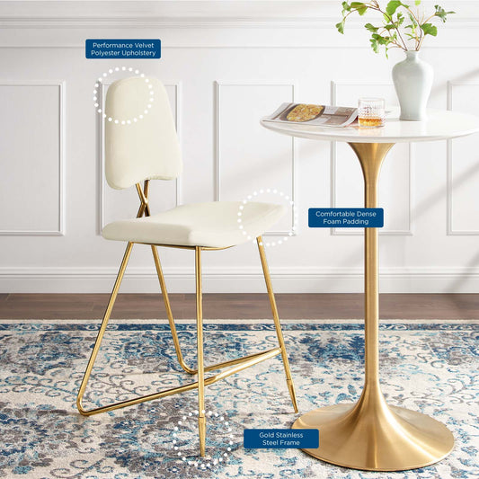 Direction Velvet Bar Stool, Ivory