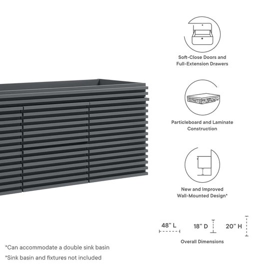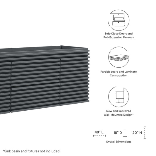 Ventra Vanity Base with Storage (Double Sink Compatible), Extra Large, Charcoal