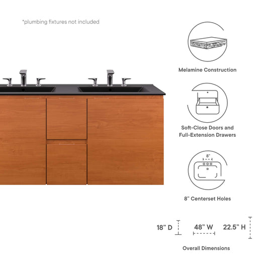 Cinnara Double Floating Vanity Unit, Extra Large, Coral & Black