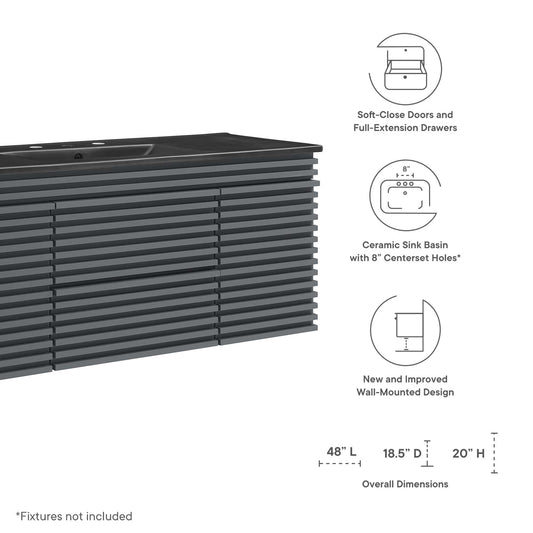 Ventra Floating Vanity Unit, Extra Large, Gray & Black