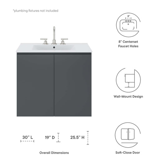 Brittney Floating Vanity Unit, Small, Gray & White