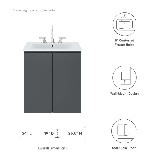 Brittney Floating Vanity Unit, Small, Gray & Black