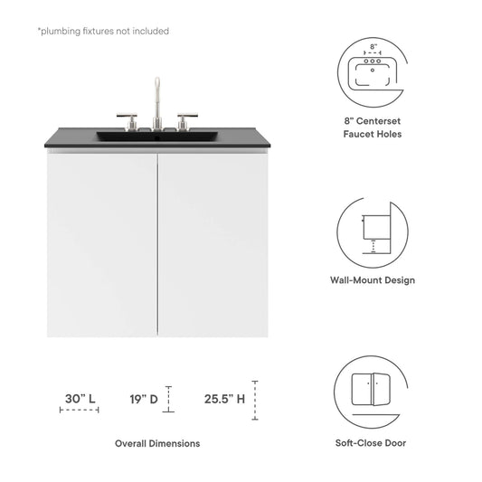 Brittney Floating Vanity Unit, Small, White & Black