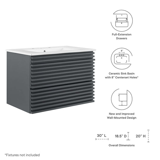Ventra Floating Vanity Unit, Extra Small, Charcoal & White
