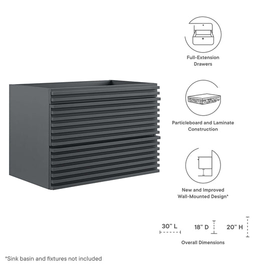 Ventra Floating Vanity Base with Storage, Medium, Charcoal