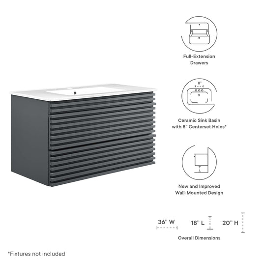 Ventra Floating Vanity Unit, Large, Charcoal & White