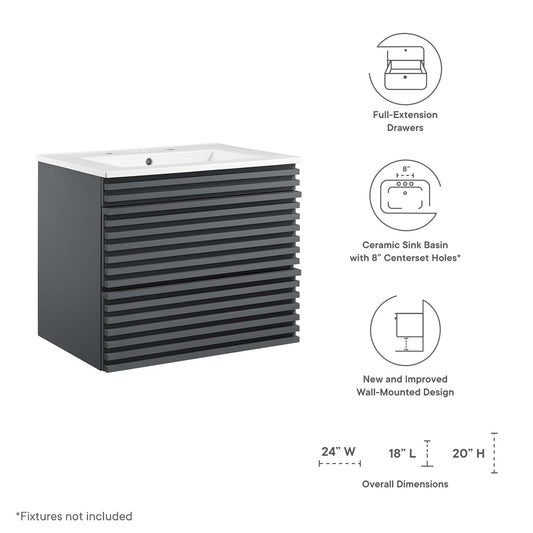 Ventra Floating Vanity Unit, Small, Charcoal & White