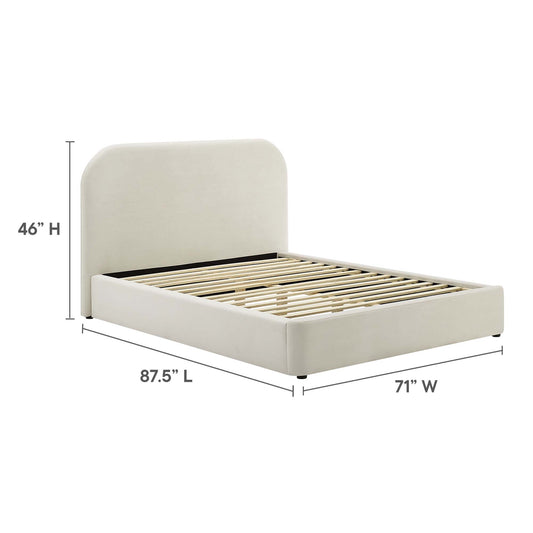 Clyra Textured Fabric Queen Platform Bed, Ivory