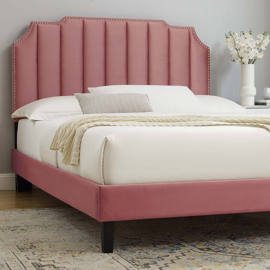 Chalette Velvet King Platform Bed, Dusty Rose & Black