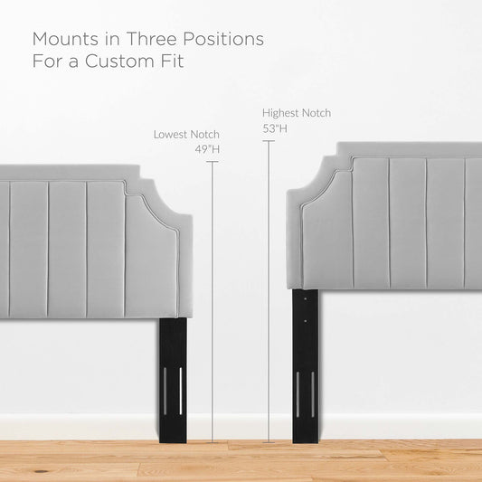 Archway Upholstered Velvet Full Platform Bed, Light Gray