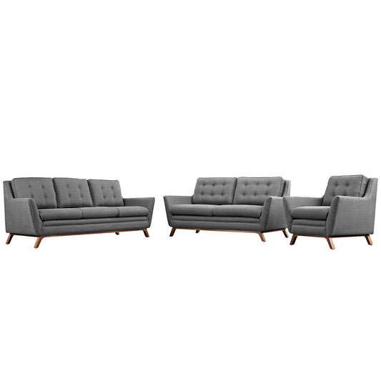 Caress 3-Piece Fabric Sofa & Armchair Set, Gray