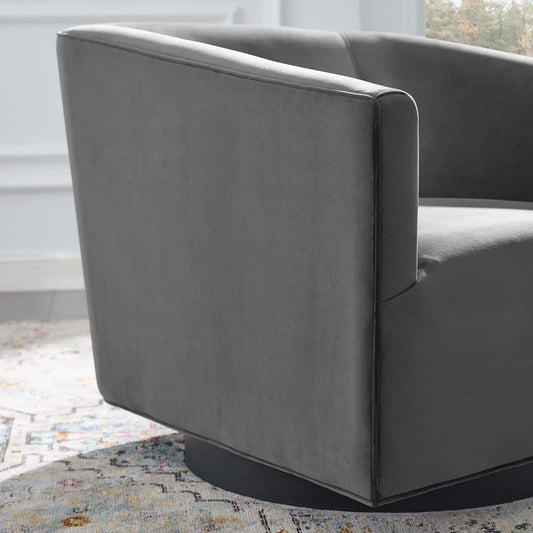 Windsor Upholstered Velvet Swivel Chair, Gray