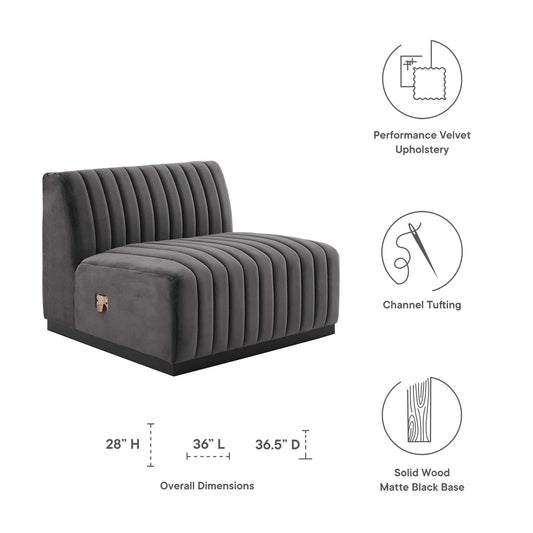 Evoke Velvet Armless Chair | Modular Sectional Component, Black & Gray