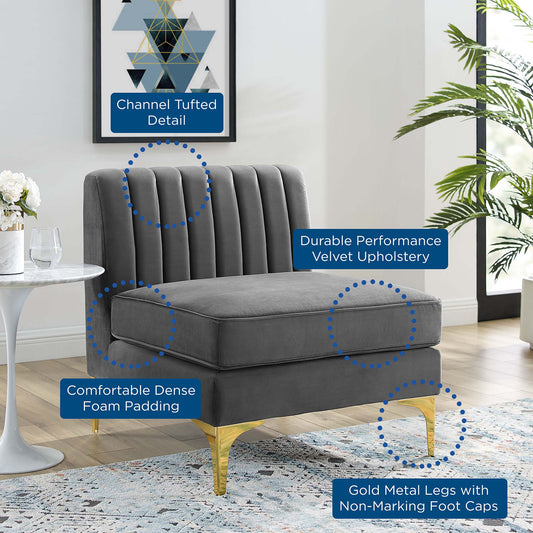 Valmere Upholstered Velvet Armless Chair | Modular Sectional Component, Gray