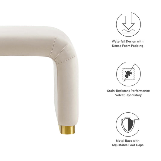 Kaela Upholstered Velvet Ottoman, Gold & Almond