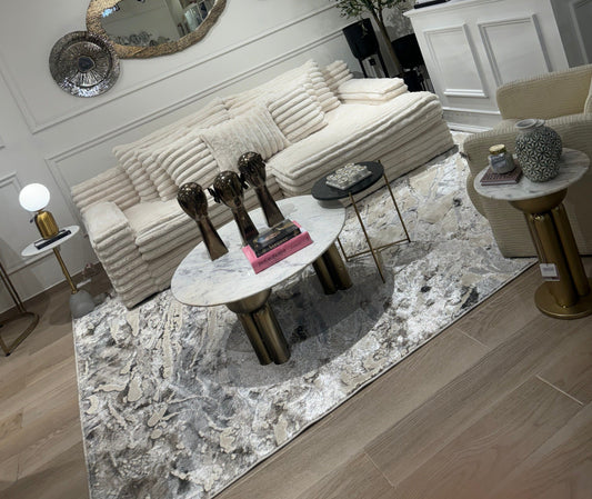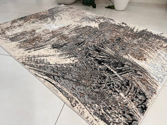 Biv Frosted Fissures Indoor | Outdoor Area Rug, Beige & Silver