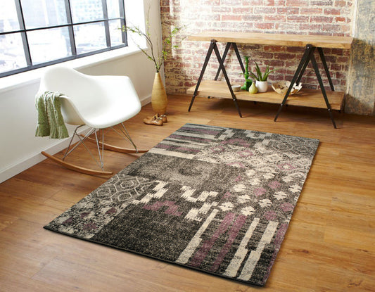 Alonzo Floral Matrix Indoor | Outdoor Area Rug, Gray & Purple