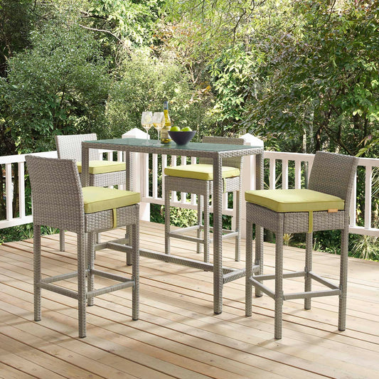 Condura Alfresco Woven Bar Stool Set of 2, Light Gray & Peridot