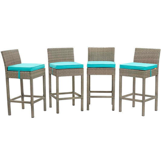 Condura Alfresco Woven Bar Stool Set of 4, Light Gray & Turquoise