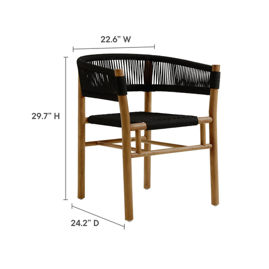 Alvierra 7-Piece Alfresco Teak and Rope Dining Set with Armchairs, Natural Wood & Black
