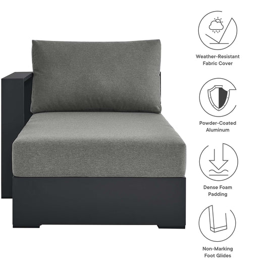 Tahlor Alfresco Powder-Coated Aluminum Right-Facing Loveseat | Outdoor Modular Sectional Component, Gray