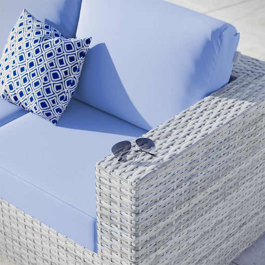 Corvara Alfresco Woven Corner Chair | Outdoor Modular Sectional Component, Light Gray & Light Blue