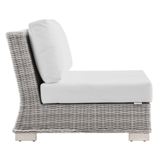 Corvara Alfresco Woven Armless Chair | Outdoor Modular Sectional Component, Light Gray & White