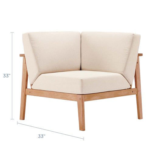 Edrissa Alfresco Corner Chair | Outdoor Modular Sectional Component, Natural Wood & Taupe