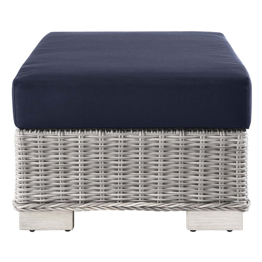 Corvara Alfresco Woven Ottoman | Outdoor Modular Sectional Component, Light Gray & Navy