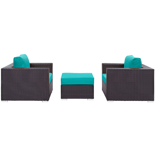 Conversation 3-Piece Alfresco Sofa Set, Espresso & Turquoise