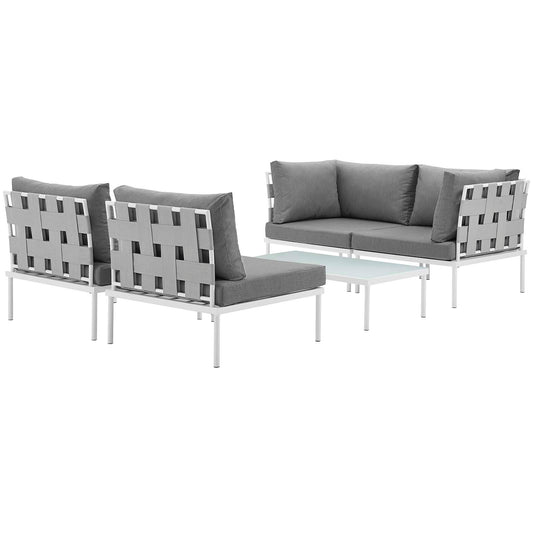 Harmonize 5-Piece Alfresco Sectional Sofa Set, White & Gray