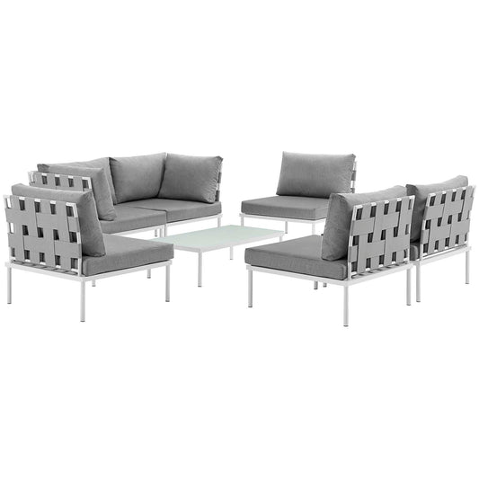 Harmonize 7-Piece Alfresco Sectional Sofa Set, White & Gray