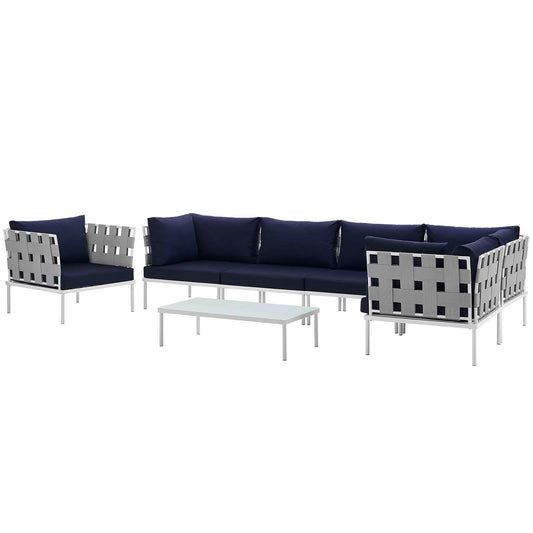 Harmonize 7-Piece Alfresco Sectional Sofa Set, White & Navy