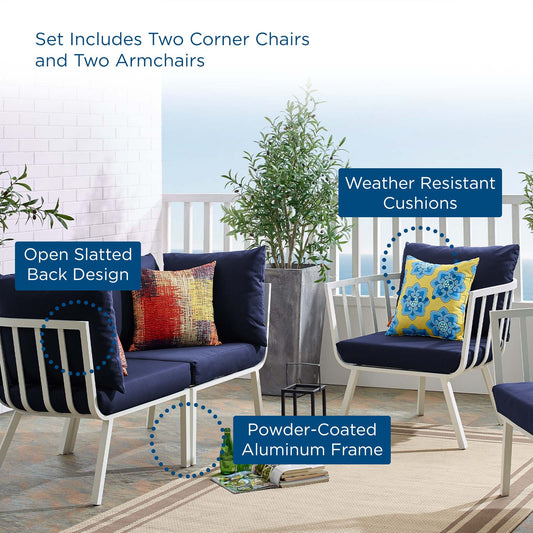Ocevara 4-Piece Alfresco Lounge Set A, White & Navy