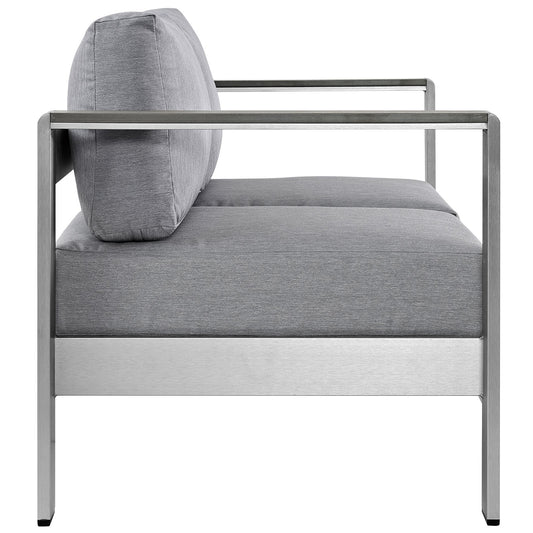 Shorea Sunbrella® Fabric Aluminum Alfresco Loveseat, Silver & Gray