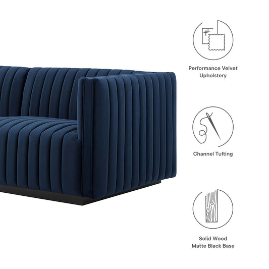 Evoke Velvet Loveseat Sectional, Black & Dark Blue
