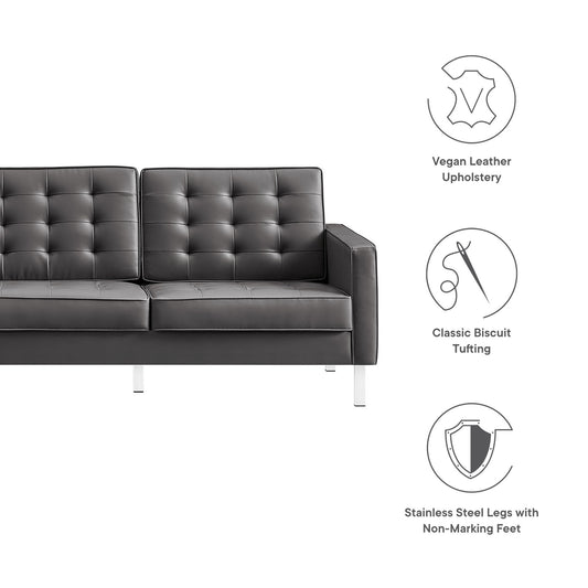 Luma Upholstered Faux Leather Sofa, Silver & Black