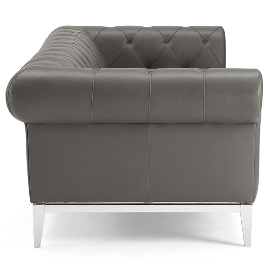 Luma Upholstered Faux Leather Sofa, Silver & Gray