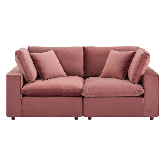 Angelic Cloudblend Velvet Loveseat Sectional, Dusty Rose