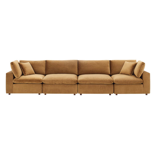 Angelic Cloudblend Velvet 4-Seater Sofa Sectional, Cognac