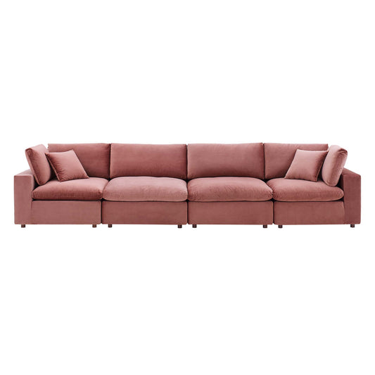 Angelic Cloudblend Velvet 4-Seater Sofa Sectional, Dusty Rose
