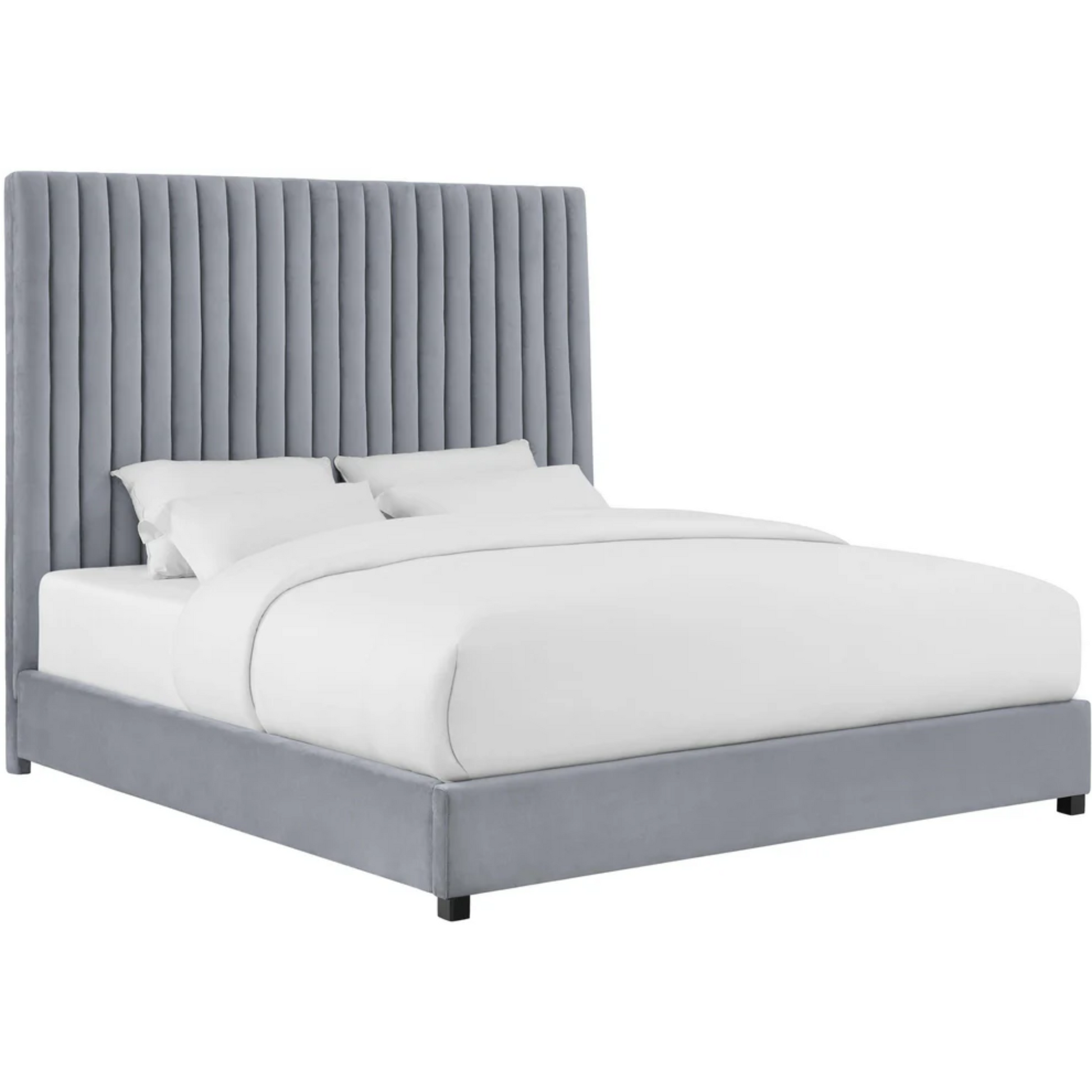 Arabella Channel Tufted Velvet King Bed, Light Gray